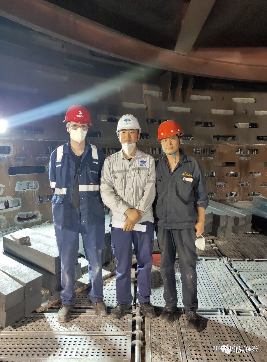 太鋼高爐的陶瓷杯采用的是瑞爾的全球合作伙伴法國圣戈班公司的陶瓷杯壁產品。由于疫情不可抗力因素影響,導致外方的砌筑指導人員無法按照原計劃到達現(xiàn)場提供砌筑技術服務。面對這一意外狀況,已經合作過多次的瑞爾與圣戈班經過協(xié)商,認為瑞爾的技術人員對圣戈班的產品也已經非常了解,因此由瑞爾派出的現(xiàn)場技術人員完成該產品的砌筑指導工作。最終瑞爾的技術人員出色地完成了國外陶瓷杯壁產品部分的砌筑指導任務。